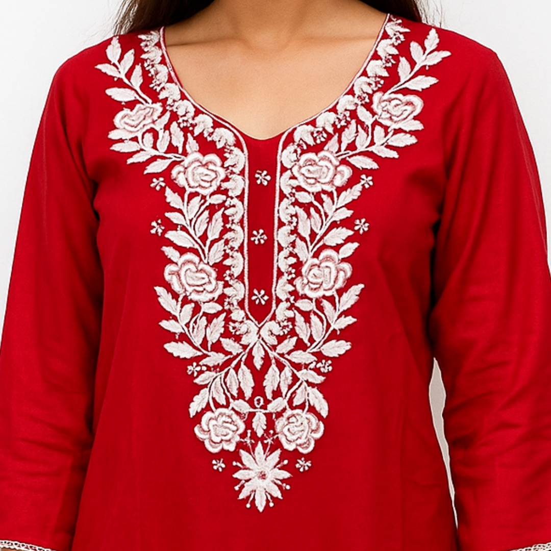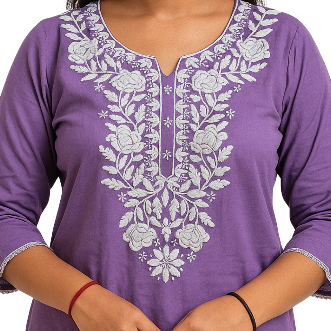 Breathe easy in this beautiful pure cotton top featuring traditional handblock print in vibrant pink florals. Designed…