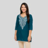 Be the first to review “Blue Color Paan Neck Design Short Kurti”