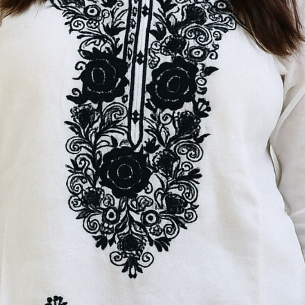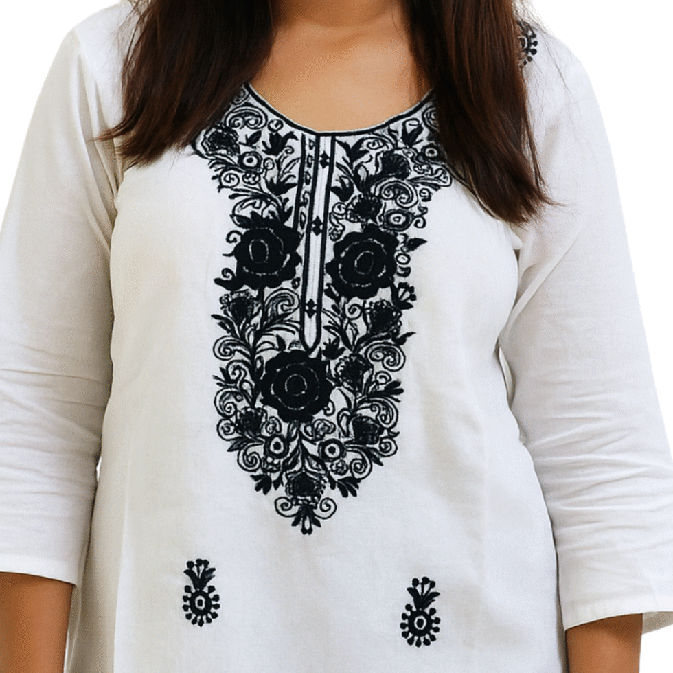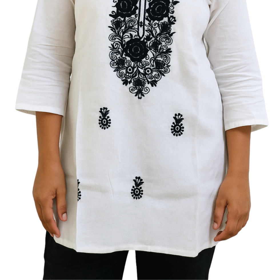White Color Rose Design Short Kurti